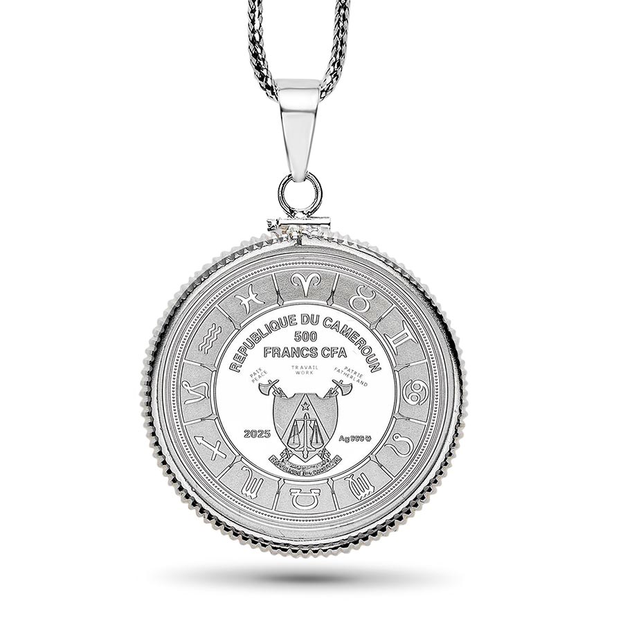 Este pendiente o colgante de plata captura ese carácter: una moneda oficial de Camerún convertida en joya, con aro para usarla en cadena y una presentación pensada para regalo. Forma parte de la serie “Zodiac Signs 2025”, dedicada a los 12 signos del zodiaco.